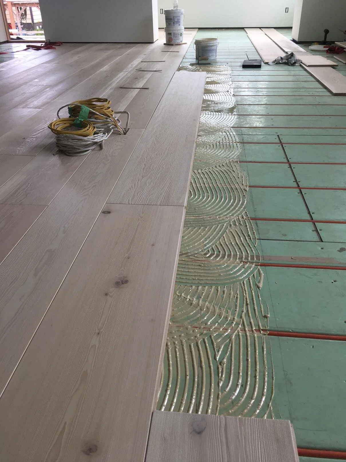 Set in the Rocky Mountains, this Revelstoke, BC heritage home is graced with stunning white wide plank floors. Up to 20” wide and installed over radiant heat!