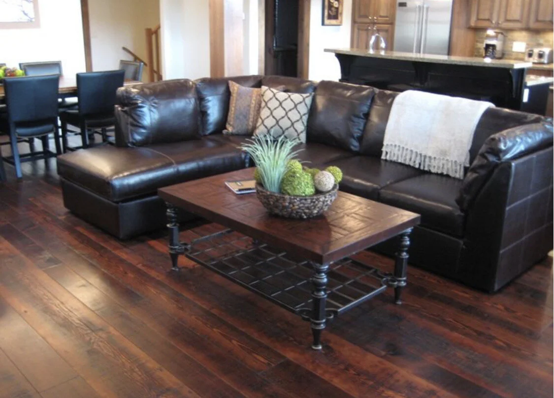 The proud owners of this mountain home were from the United Kingdom and wanted their floors in Sun Peaks, BC. to resemble the dark wooden floors seen in Old English Pubs.
